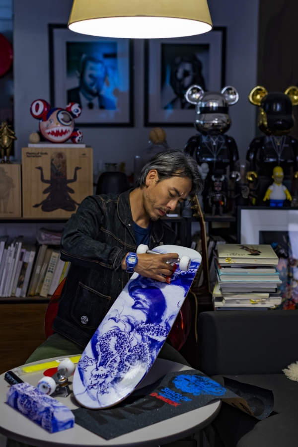 浓淡变幻浑然而庄重,白釉青花精雅而古朴。凝结了中华文化与精湛技艺的青花瓷在600多年前就风靡全球,成为了征服西方审美的新兴潮流。其中象征着华夏民族的「龙」图腾更是广受收藏家的青睐。敢为人先的G-SHOCK脑洞大开,以代表街头文化的滑板作为载体重译青花瓷,特别邀请景德镇瓷画研究院特聘画师朱斐翡创作青花龙图,并经由精湛技艺的景德镇制瓷匠人烧制出4块惊艳世界的青花瓷纪念滑板。分别寓意着:飞龙在天、龙战在野、潜龙勿用、神龙摆尾,爆发出无尽潮流潜力!